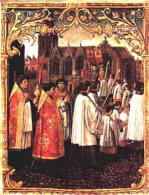 Het MirakelOp15maart1345,enkeledagenvoorPalmzondag,ontvangteenziekeindeKalverstraatteAmsterdamdeHostie bijhetSacramentderZieken.Maaromdathijzichnietgoedvoeltgeefthijover.Uiteerbiedwordtallesopgevangen en in het vuur geworpen, maar de Hostie blijft in het vuur zweven.EeuwenernabeschreefAntonvanDuinkerkenhetineensonnet:“DeHostie,weggeworpeninhetvuur,bleef ongedeerd tussen de vlammen zweven. Genadekracht bleek sterker dan natuur.”Eenvrouwsteekthaarhandentussendevlammen,haaltdeHostieuithetvuurzonderdathaarhandenverbranden en legt het in een kist.Depastoorvandeparochiekerk,dehuidigeOudeKerk,wordterbijgehaaldenhijneemtdeHostiemeenaarde kerk.DevolgendedagopentdevrouwindewoningindeKalverstraatdekistenvindttothaarverbazingde Hostieweerindekistliggen.ZijontbiedtdadelijkweerdepastoorenhijbrengtdeHostieweerterugnaardekerk. De dag daarna ligt de Hostie opnieuw in de kist bij de zieke.DanpasbegrijptmendatGodwildatditwonderopenbaargemaaktwordt;zodoendekomtdepastoorenneemt deHostieineenplechtigeprocessienaardeOudeKerk.HetjaardaarnawordtdoorbisschopJanvanArkel verklaard dat er sprake is van een wonder.Tweejaarnaditvoorvalwordteralopdeplaatsvanditwondereenkerkgebouwd(genaamddeHeiligeStede). Bovendienontstaatdegewoonteomrond15maarteensacramentsprocessiedoordestratenvanAmsterdamte houden. Er komt een stroom pelgrims op gang naar deze kapel om het Mirakel van het Sacrament te vieren.Aandeze‘roomse’processiekwameeneindtoenin1578hetbestuurvandestadAmsterdamovergingnaarhet gereformeerde geloof (alteratie). De katholieken mochten hun geloof niet meer openbaar belijden.SacramentsprocessieIn 1360 wordt er in een memorie melding gemaakt van een maart-processie.Vanaf1346totaandealteratiein1578werdwaarschijnlijkiederjaaropdeeerstewoensdagnadefeestdagvan HeiligeGregoriusop12maartdoordepriestersenparochianenvandeHeiligeStedehetHeiligSacrament gedragen naar de huidige Oude Kerk.SamenmetdepriestersenparochianenvandeOudeKerkliepenzijdanweerterugnaardeHeiligeStede. Hiermede werd het ‘Wonder’ van 1345 herdacht.DezeprocessiemoeteenfeestelijkschouwspelgeweestzijnwaariederekatholiekeburgervanAmsterdamzijn steentje aan bij droeg.In de stoet liepen de Gilden voorop met hun gildentekens en beelden van de beschermheiligen van de Gilden.Zij werden gevolgd door kinderen die andere heiligenbeelden droegen, met daarachter een persoon te paard, die de Heilige Gregorius voorstelde op paard en een grote draak voortslepende.Daarnakinderenmetvleugelsaanhunschouders,drieafdelingenschutterseneenaantalgeestelijkenen monniken.UiteindelijkdepriestervandeHeiligeStedemethetHeiligSacramentvanhetMirakelineengrotezilveren ciborie, onder een versierde draaghemel welke gedragen werd door de vier burgemeesters van Amsterdam.Hetgeheelwerdomlijstdoorstadsmuzikantendiemuziekstukkenuitvoerden.Achteraanliependebiddende gelovigen.Na de alteratie werden deze openlijke processies verboden.De Stille OmgangDe grote stimulans tot de hernieuwde ontwikkeling van de Amsterdamse Mirakelverering kwam tot stand nadat een zekere Joseph Lousbergh een geschrift van 16 december 1651 ontdekte waarop de route van de middeleeuwse Mirakelprocessies stond beschreven. Samen met zijn vriend Carel Elsenburg besloot hij in 1881 die route weer devotioneel na te lopen.Het idee sloeg aan. Binnen enkele jaren groeide dit privé-initiatief uit tot een snel groeiende beweging.De initiatiefnemers besloten zich te organiseren in het ‘Gezelschap van de Stille Omgang’. Spoedig kwamen ook steeds meer katholieken van buiten Amsterdam om deel te nemen aan de jaarlijkse Stille Omgang.Het begin van het Mirakelfeest is elk jaar op de woensdag na 12 maart. Van woensdag tot en met zaterdag worden er dagelijks feestelijke missen in de kapel op het Begijnhof opgedragen. Maar de grote jaarlijkse manifestatie is nog steeds de Stille Omgang die wordt gehouden tijdens deze nacht van zaterdag op zondag.Met vele bussen komen dan uit geheel Nederland bedevaartgangers naar het centrum van Amsterdam. Na in een van de Amsterdamse parochiekerken de mis te hebben gevierd, nemen zij vervolgens verspreid over de nacht deel aan de Omgang en lopen de omgangsroute.Kenmerkend voor deze Omgang is dat deze stilzwijgend wordt volbracht, zonder openlijk gebed of gezang en zonder kerkelijke kledij of andere religieuze attributen. Vandaar de naam ‘Stille Omgang’.Deze Omgang duurt ongeveer een uur en vindt ergens tussen middernacht en vier uur in de zondagochtend plaats. Tegenwoordig lopen ongeveer 10.000 mensen deze tocht en ze komen van diverse christelijke kerken.De route van de Stille OmgangDe route van de Stille Omgang komt voort uit de route die de pastoor liep met de hostie naar de Oude Kerk en waaruit het Mirakel is ontstaan. Centraal is de plek in de Kalverstraat waar het Mirakel heeft plaatsgevonden. •de ‘GedachteNis’;•maar ook de locatie voormalige Heilige Stede;•en de Mirakelkolom op het Rokin (momenteel in gemeentelijke opslag).Secretariaat Gezelschap van de Stille OmgangHerengracht 2201016 BT Amsterdaminfo@stille-omgang.nlwww.stille-omgang.nl