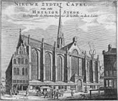 Topografie•De stad Amsterdam ontwikkelde zich vanaf de 13e eeuw aan weerszijden van de rivier de Amstel en vormde respectievelijk de wijken Oude (oost) en Nieuwe (west) Zijde. In de Oude Zijde stond de St. Nicolaaskerk, de parochiekerk van de stad, en na 1400 kwam daar de Nieuwe of Catharinakerk aan de Nieuwe Zijde bij. Het mirakel zou zijn gebeurd in een huis dat stond aan de Kalverstraat, bijna op de hoek met de Wijde Kapelsteeg aan de Nieuwe Zijde.•Reeds in 1346 werd begonnen met de bouw van een kapel op de plaats van of naast het huis waar het sacramentswonder was geschied. In oktober 1347 werd deze kapel ingezegend. De kapel brandde bij de stadsbrand van 13 april 1421 geheel af. De herbouwde kapel brandde op 25 mei 1452 bij een nieuwe stadsbrand gedeeltelijk af. De 'derde kapel' was in ieder geval in 1456 weer in gebruik en werd in 1457 uitgebreid. De kapel nam toen al vrijwel de gehele ruimte tussen Kalverstraat, Rokin, Wijde Kapelsteeg en Enge Kapelsteeg in beslag. Het is het kerkgebouw, toen reeds 'Heilige Stede' genaamd, dat tot 1908 vrijwel onveranderd op die locatie heeft gestaan.•De Heilige Stede was een hallenkerk met drie schepen van gelijke hoogte die in de west-oost richting waren gebouwd. Aan de westzijde, parallel met de Kalverstraat, lag het dwarsschip. Aan de noordzijde liep het transept door tot aan de plaats waar het mirakel had plaatsgevonden. Er was daar een min of meer separate kapel met een aparte toegang voor pelgrims die vanuit de Wijde Kapelsteeg binnenkwamen. In deze uitbouw vormde de 'heilige hoek' de plaats waar naar verluidt de oude mirakelhaard was ingebouwd. Er stond een speciaal sacramentsaltaar dat door middel van een hek van de bedevaartgangers was afgeschermd. Onduidelijk is of de oorspronkelijke mirakelhaard de stadsbranden en de kapelherbouwen daadwerkelijk heeft doorstaan. In ieder geval kreeg kapelmeester Gerrit Doodtshoofd in 1624 nog de opdracht de mirakelhaard 'gemaakt van roode steenen en boven den haart [...] een klijn schoorstientje tegen een pilaar aen' weg te breken.•De Heilige Stede werd vlak na de alteratie op 29 mei 1578 gestormd en is kort daarna voor de katholieke eredienst gesloten om voor de gereformeerden als gebedshuis, spoedig ook Nieuwe Zijdskapel genoemd, dienst te doen, tot aan de sloop in 1908 (zie ‘Bouwvallige Heilige Stede moest verdwijnen’).•Na de sluiting van de kapel in 1578 werden de (liturgische) objecten met betrekking tot het mirakel enkele jaren bij particulieren bewaard. Een huis en later de sacristie (van de oorspronkelijke Begijnhofkerk) op het nabijgelegen begijnhof functioneerden sinds het tweede kwart van de 17e eeuw als nieuwe huiskerk. In 1665 zijn de sacristie en het belendende pand tot een grotere schuilkerk omgebouwd. Daar vond de mirakelverering een nieuw onderdak.•De sacrale stadtopografie werd en wordt bepaald door de locatie van de heilige plaatsen (de oude en de nieuwe Heilige Stede) en de route van de middeleeuwse sacramentsprocessie, de latere heimelijke ommegangen en de 19e/20e-eeuwse Stille Omgangen. Over deze route en de Heiligeweg, zie hieronder bij Verering. Bouwvallige Heilige Stede moest verdwijnen(Tekst: Marius van Melle & Niels Wisman, Mei 2011)10 juli 1908Op 10 juli 1908 zetten de slopers van de Gebroeders A. en B. Slier de moker in de Nieuwezijdskapel op het Rokin. Het monumentale gebouw dateerde uit de 15de eeuw en was de opvolger van de Kapel ter Heilige Stede. De doorbrand verwoeste bedevaartskapel die in de 14de eeuw was gebouwd op de plaats waar zich in 1345 het Hostiewonder of Mirakel van Amsterdam afgespeeld zou hebben.“De vraag is niet wie de moord op zijn geweten heeft, maar hij is gebeurd en wij beklagen hem.” Die verzuchting slaakte dedichter Albert Verwey na zijn bezoek aan de half afgebroken Nieuwezijdskapel in de tweede helft van 1908. De slopers waren toen al goed op weg. Alleen wat muren stonden nog overeind en Verwey werd geraakt door de aanblik van de lucht door de latten van het pannenloze dak. De schoonheid ontroerde hem, zoals hij ook getroffen was door de resten van het bouwwerk omdat hij zich realiseerde wat zich eeuwenlang tussen de muren had afgespeeld.Toen de dichter de onttakelde Nieuwezijdskapel bezocht, was over de afbraak al veel gezegd – meestal een stuk minderpoëtisch.Tien jaar eerder was het allemaal begonnen met een papier dat was aangebracht op de kapelpoort aan het Rokin. “Gesloten wegens herstelling”, stond erop. Er waren er die het meteen al niet vertrouwden. Volgens een latere getuigenis van architect C.B. Posthumus Meyjes sr. was sluiting onvermijdelijk, omdat op 18 februari 1898 ‘werking’ was opgetreden in één van de koorpilaren. Stukken zandsteen waren naar beneden gekomen en de veiligheid van de kerkgangers kon niet meer worden gegarandeerd. Helemaal onverwacht kwam dat niet. Sinds mensenheugenis zaten er scheuren in de buitenmuren, die bovendien steeds meer naar binnen of naar buiten begonnen te hellen. Alle pilaren op één na stonden uit het lood. Een eerste onderzoek naar de bouwkundige staat werd na de sluiting uitgevoerd door Posthumus Meyjes sr. en zijn vakgenoot D.A.N. Margadant. De heren kwamen op 7 april 1898 met een rapport. Ze stelden vast dat het gebouw er beroerd aan toe was. Zonder er zelf écht in te geloven, wezen ze op de mogelijkheid van noodmaatregelen, zoals vervanging van de scheefste pilaren, de zware topgevels en het belastende pannendak. De gevaarlijk situatie zou ook dan blijven voortbestaan en eigenlijk wilden ze de verantwoordelijkheid voor zo’n restauratie niet voor hun rekening nemen.Juridisch steekspelIn februari 1899 besloot de kerkenraad van de Hervormde Gemeente van Amsterdam tot sloop. Op de vrijgekomen grond zou een nieuwe kerk in combinatie met winkelpanden komen. Nog dezelfde maand besloot het Koninklijk Oudheidkundig Genootschap bezwaar aan te tekenen. De heren van het genootschap beriepen zich op de historischebetekenis van het gebouw. Vooraanstaande katholieken protest